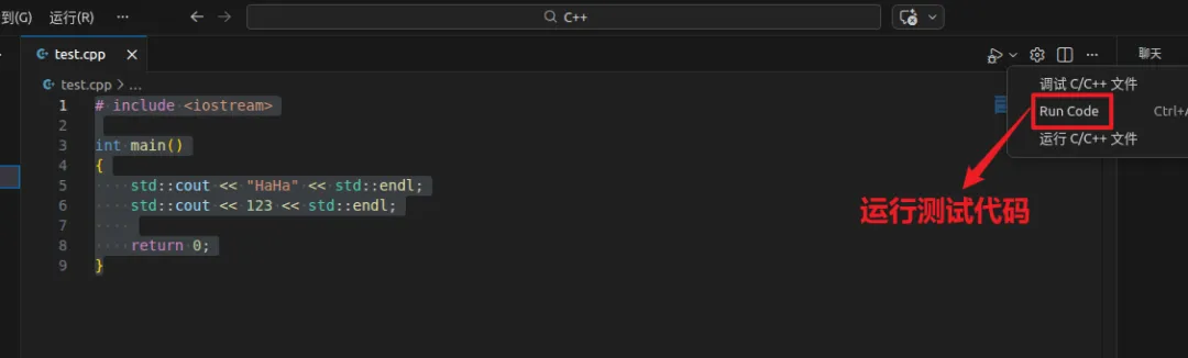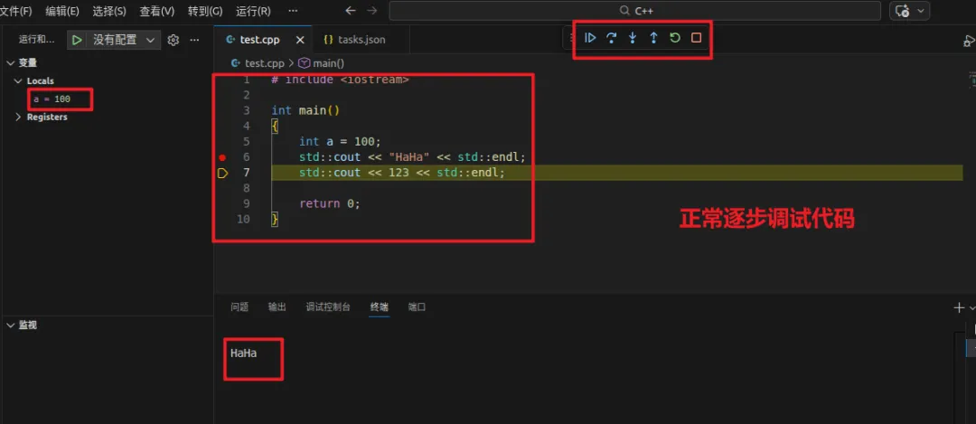 include<iostream>intmain(){    int a = 100;    std::cout << "HaHa" << std::endl;    std::cout << 123 << std::endl;    return 0;}