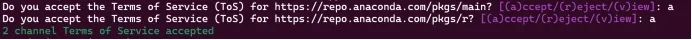 询问是否接受anaconda软件仓库的使用协议(ToS)