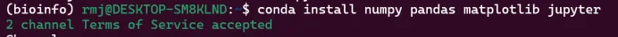 conda install numpy pandas matplotlib jupyter