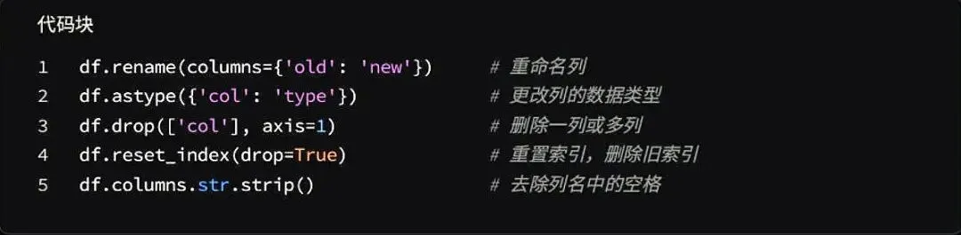 列的重命名与清理:更改列名、数据类型,删除列,去除空格等。