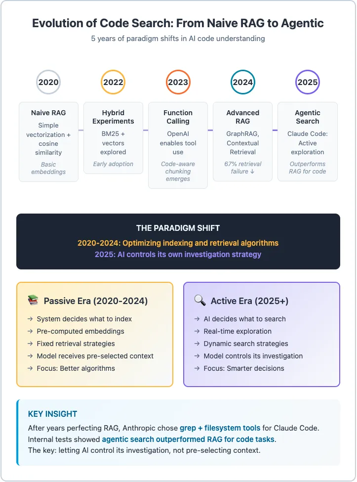 对于大多数开发工作流,尤其是探索和开发阶段,智能体搜索表现出色。随着模型越来越聪明,这种方法的优势将愈发明显。