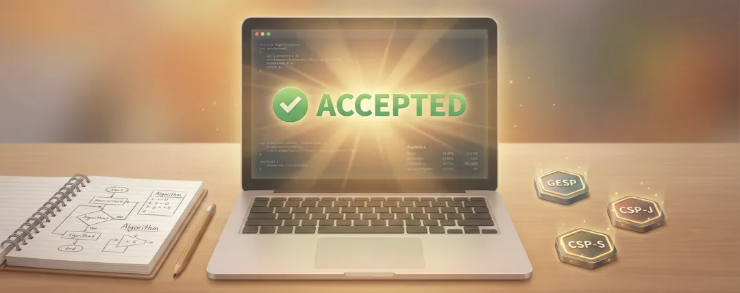 Scratch 和 Python 阶段,编程的乐趣在于“创作”——做动画、画图、写小游戏,孩子能看到自己做出来的东西。到了 C++ 阶段,乐趣的来源变成了“解题”——读懂一个问题,想出一个巧妙的办法,写出代码,提交上去,看到屏幕上出现“正确通过”。这种“想明白了”的快感,其实一点都不比做出一个 Scratch 动画差,只是形式不同。