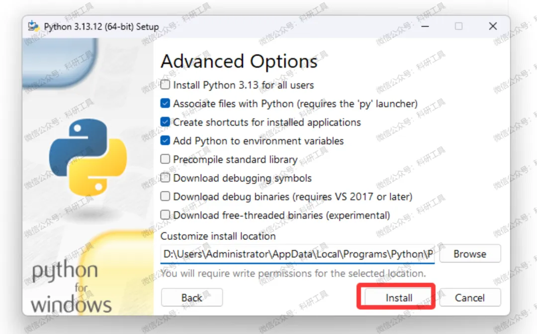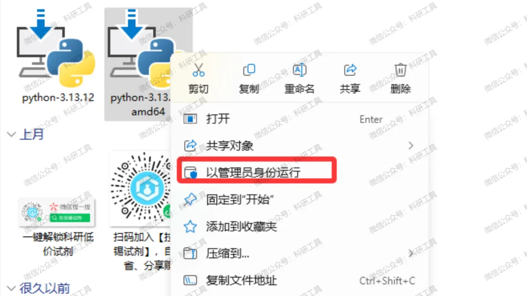 3️⃣ 找到「python-3.13.12-amd64.exe」应用程序,右键 → 以管理员身份运行;