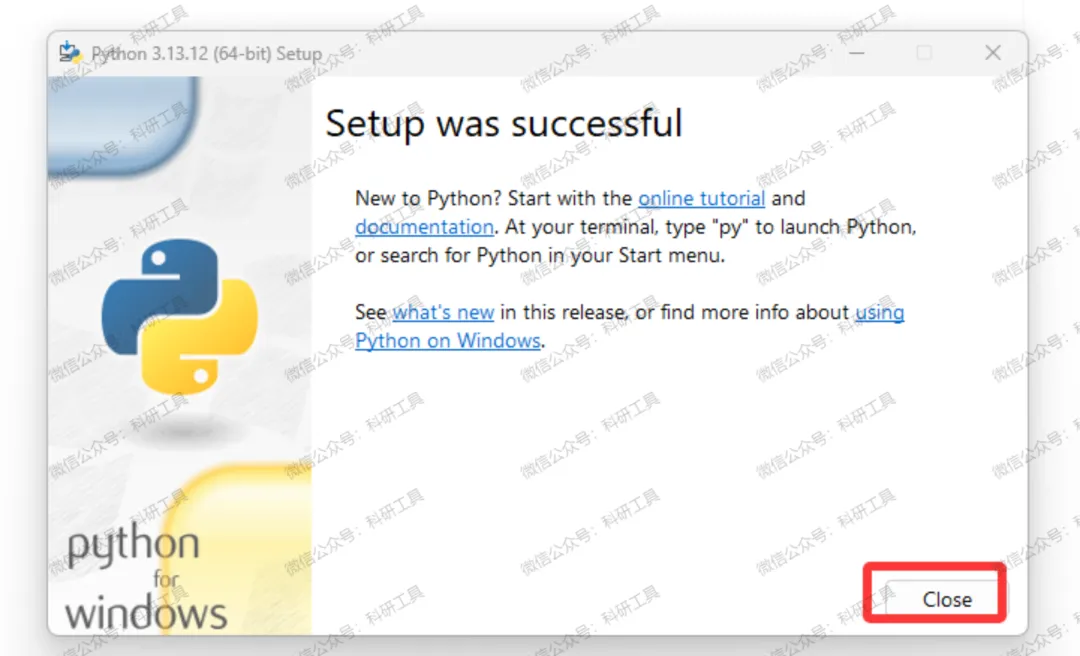 8️⃣ 点击 "Close" 关闭安装向导;
