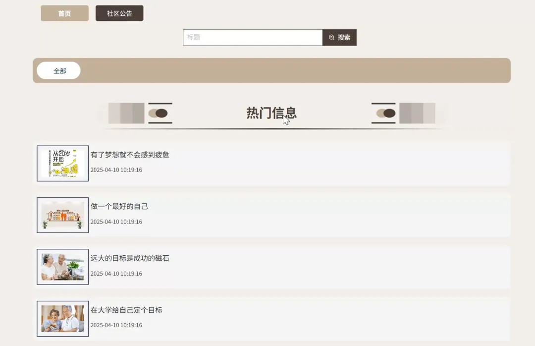 # 此处仅为示例,模拟使用Spark对历史预约数据进行离线分析,预测未来一周的热门社区from pyspark.sql import SparkSessionspark = SparkSession.builder.appName("ElderlyCareAnalysis").getOrCreate()# 假设appointments_df是一个包含历史预约数据的Spark DataFrame# appointments_df = spark.read.csv("hdfs://path/to/appointments.csv", header=True)# popular_communities = appointments_df.groupBy("community_id").count().orderBy("count", ascending=False)# popular_communities.show()def query_communities(request): location = request.GET.get('location', '') price_min = request.GET.get('price_min', 0) price_max = request.GET.get('price_max', 999999) facility = request.GET.getlist('facility', []) communities = Community.objects.all() if location: communities = communities.filter(address__icontains=location) if price_min: communities = communities.filter(price__gte=price_min) if price_max: communities = communities.filter(price__lte=price_max) if facility: communities = communities.filter(facilities__name__in=facility).distinct() community_list = list(communities.values('id', 'name', 'address', 'price', 'main_image', 'contact_phone')) return JsonResponse({'status': 'success', 'data': community_list})def book_appointment(request): if request.method == 'POST': user_id = request.user.id community_id = request.POST.get('community_id') appointment_date = request.POST.get('appointment_date') contact_phone = request.POST.get('contact_phone') if not all([community_id, appointment_date, contact_phone]): return JsonResponse({'status': 'error', 'message': '信息不完整'}) try: community = Community.objects.get(id=community_id) except Community.DoesNotExist: return JsonResponse({'status': 'error', 'message': '社区不存在'}) if Appointment.objects.filter(user_id=user_id, community=community, appointment_date=appointment_date).exists(): return JsonResponse({'status': 'error', 'message': '您已预约该社区在此日期的参观'}) appointment = Appointment.objects.create(user_id=user_id, community=community, appointment_date=appointment_date, contact_phone=contact_phone, status='待确认') return JsonResponse({'status': 'success', 'message': '预约成功,请等待社区联系您'})def update_community_info(request): if request.method == 'POST' and request.user.is_staff: community_id = request.POST.get('id') try: community = Community.objects.get(id=community_id) except Community.DoesNotExist: return JsonResponse({'status': 'error', 'message': '未找到该社区信息'}) community.name = request.POST.get('name', community.name) community.description = request.POST.get('description', community.description) community.address = request.POST.get('address', community.address) community.price = request.POST.get('price', community.price) community.contact_phone = request.POST.get('contact_phone', community.contact_phone) if 'main_image' in request.FILES: community.main_image = request.FILES['main_image'] community.save() return JsonResponse({'status': 'success', 'message': '社区信息更新成功'}) return JsonResponse({'status': 'error', 'message': '权限不足或请求错误'})