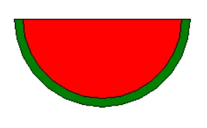 夏天快到了,又到了吃西瓜的季节。西瓜是夏天的代表,让人在它的色香味中,感受到夏天的魅力。请你用Python,画出如下图所示的西瓜: