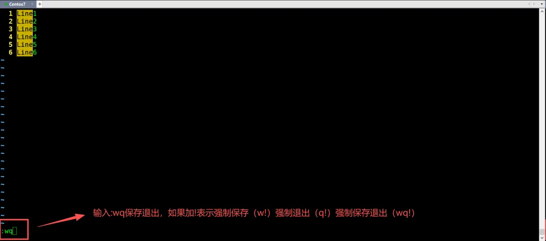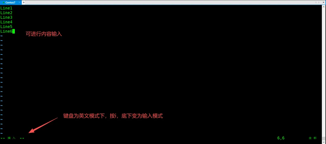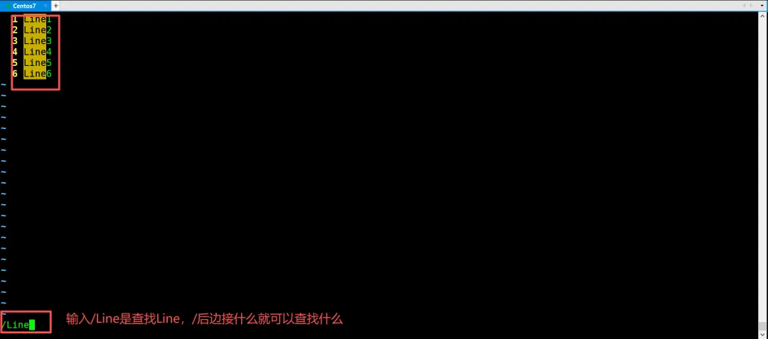 # 在vim中练习:1. 按i进入插入模式,添加内容2. 按ESC返回命令模式3. 输入:set nu 显示行号4. 输入/Line 搜索5. 输入:wq保存退出