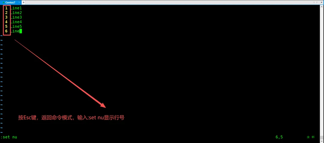 # 创建并编辑文件echo -e "Line1\nLine2\nLine3\nLine4\nLine5" > /tmp/test.txtvim /tmp/test.txt