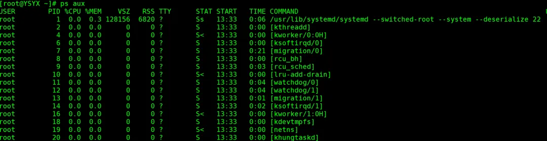 ps aux # 查看所有进程详细信息ps -ef# 完整格式列表ps -u root # 查看指定用户进程ps -eo pid,ppid,cmd,%mem,%cpu --sort=-%mem | head -10# 查看内存使用前10# 字段解释USER: 进程所有者PID: 进程ID%CPU: CPU使用率%MEM: 内存使用率VSZ: 虚拟内存大小RSS: 驻留集大小TTY: 终端STAT: 进程状态START: 启动时间TIME: 运行时间COMMAND: 命令