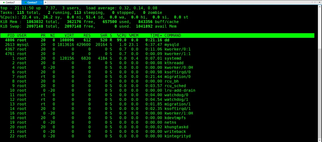 在第一个终端执行:dd if=/dev/zero of=/dev/null &