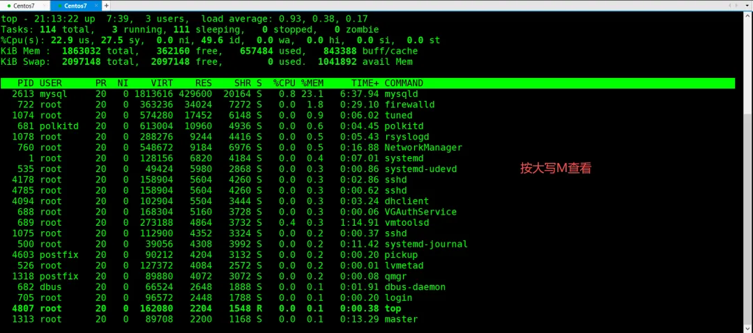 top# 动态显示进程信息# top交互命令P: 按CPU排序M: 按内存排序N: 按PID排序k: 结束进程r: 修改进程优先级h: 显示帮助q: 退出