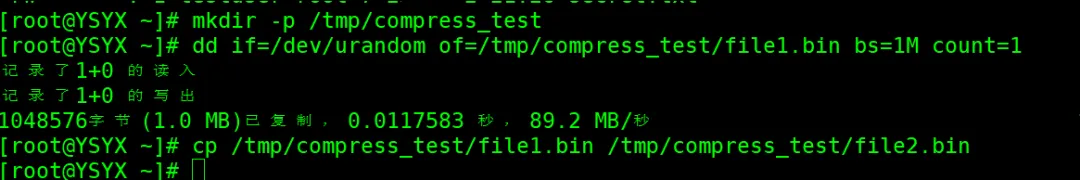 # 创建测试文件mkdir -p /tmp/compress_testdd if=/dev/urandom of=/tmp/compress_test/file1.bin bs=1M count=1cp /tmp/compress_test/file1.bin /tmp/compress_test/file2.bin