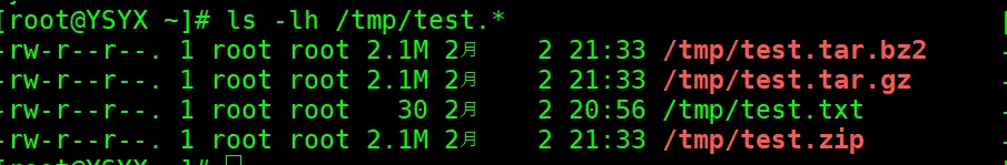 # 使用不同工具压缩time tar -czf /tmp/test.tar.gz /tmp/compress_test/*time tar -cjf /tmp/test.tar.bz2 /tmp/compress_test/*time zip -r /tmp/test.zip /tmp/compress_test/*