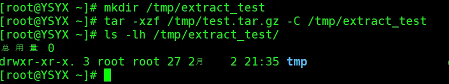 # 解压测试mkdir /tmp/extract_testtar -xzf /tmp/test.tar.gz -C /tmp/extract_testls -lh /tmp/extract_test/