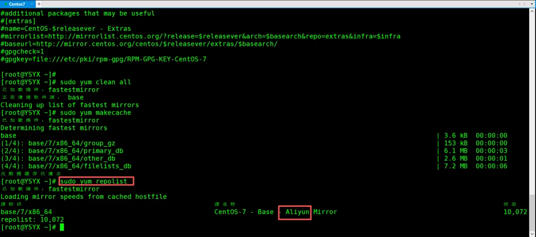 sudo cp /etc/yum.repos.d/CentOS-Base.repo /etc/yum.repos.d/CentOS-Base.repo.backup清除 yum的缓存以确保使用最新的仓库信息