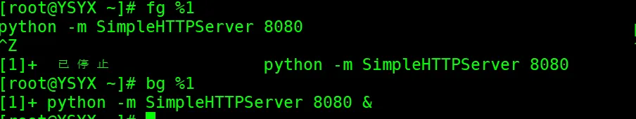 # 操作作业fg %1# 按Ctrl+Z暂停bg %1