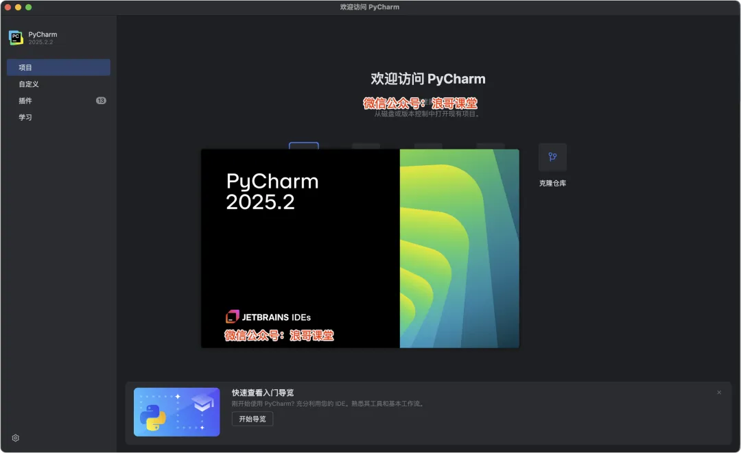 在「浪哥课堂」公众号后台回复:PyCharm 即可获取网盘下载链接!