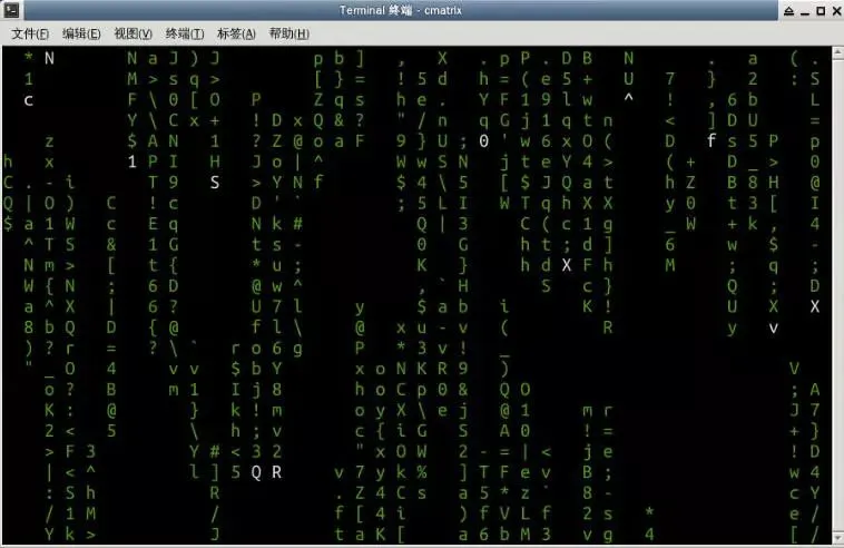 $cmatrix要关闭效果,按ctrl+c 结束。