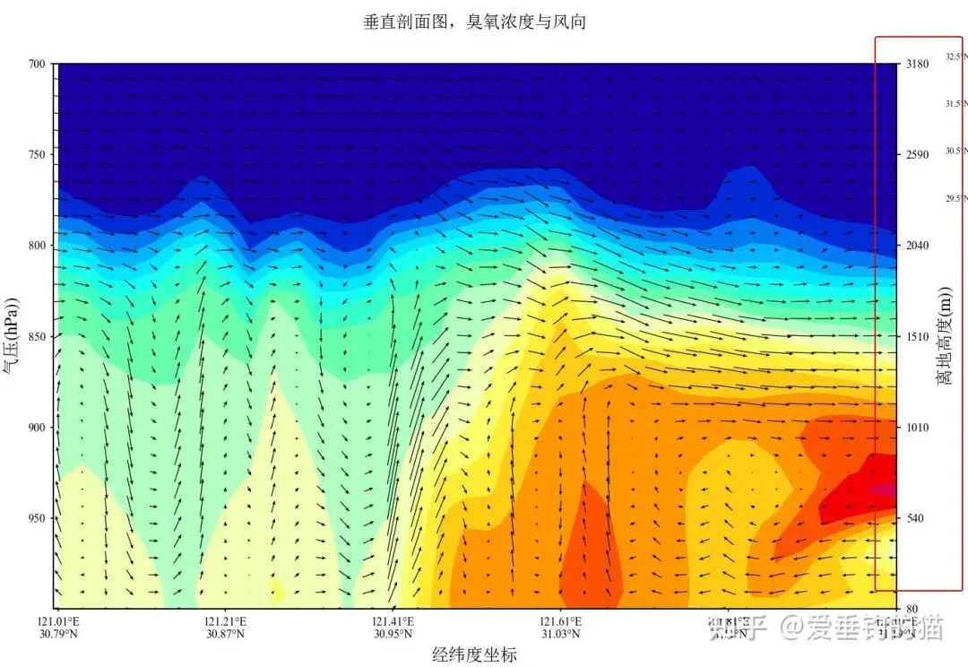 axe.set_title('垂直剖面图,臭氧浓度与风向',fontsize=12,y=1.05)