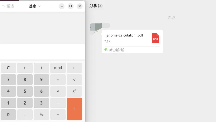 下一个linux版本某信,然后找个文件改名或者创建带有`号包裹文件名(如`gnome-calculator`.pdf),文件命令填自己想要执行的命令的文件,发送给自己。当点击打开文件,就会执行文件命名的命令。