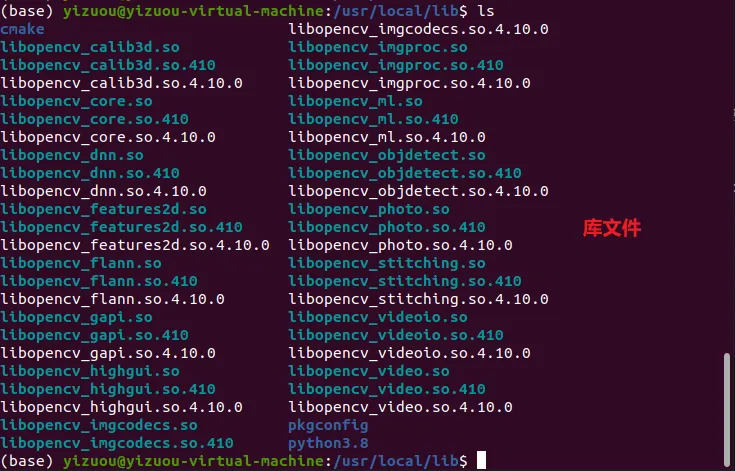 安装完成后,OpenCV 的头文件存放在/usr/local/include/opencv4/,库文件存放在/usr/local/lib/。