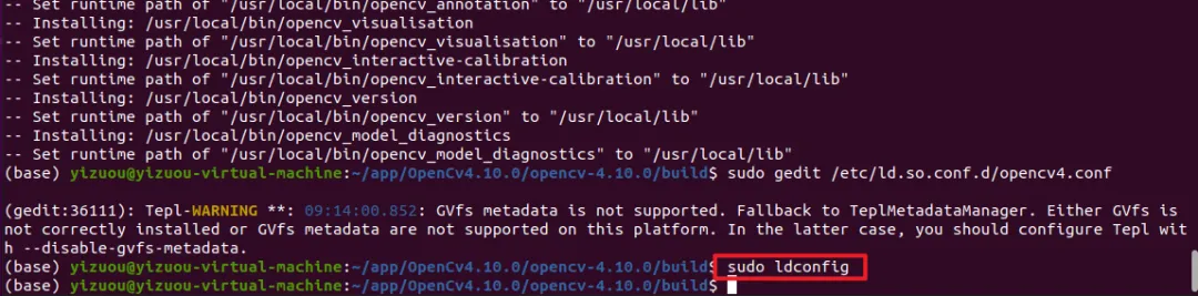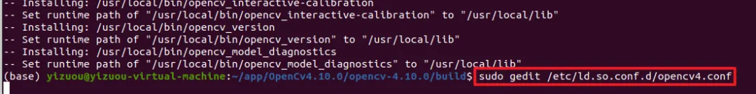 sudo gedit /etc/ld.so.conf.d/opencv4.conf