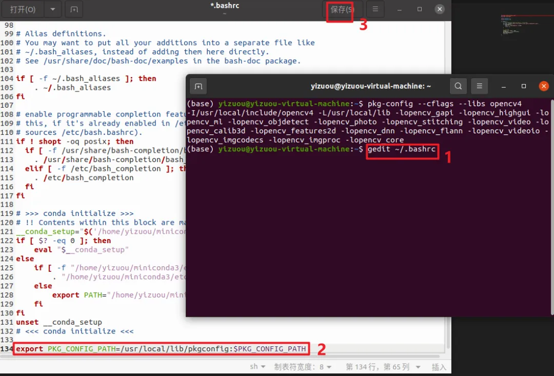 通过配置 bash 文件,让系统识别 OpenCV 的.pc 配置文件,方便编译时通过 pkg-config 自动获取头文件和库文件路径。