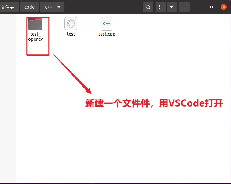 打开 VSCode,新建文件夹作为项目目录(示例:test_opencv)