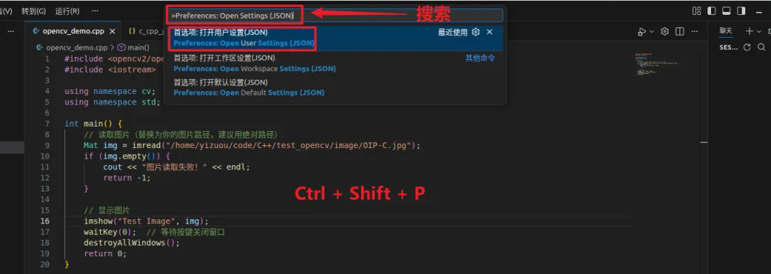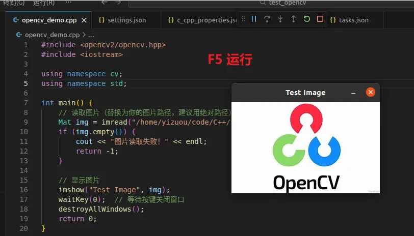 完成系统级的 OpenCV 安装后,需要配置 VSCode,让其识别 OpenCV 头文件、实现编译和调试,核心是配置 3 个关键文件:c_cpp_properties.json、launch.json、tasks.json,并解决 Code Runner 插件的运行问题。