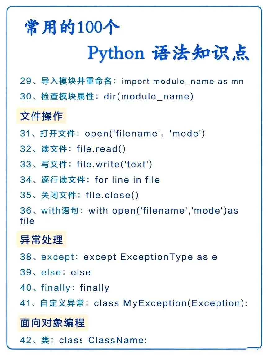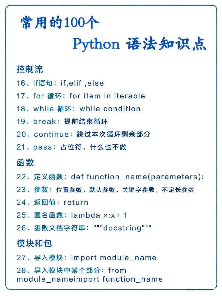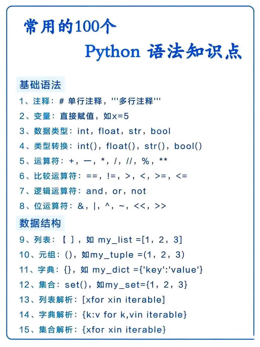 整理了Python常见语法知识点,干货满满!建议新手小白收藏保存,慢慢学习吃透,这是进阶Python高手的必经之路!