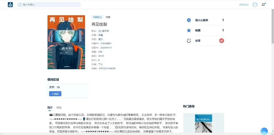 前台功能包括:首页、图书推荐、图书详情页、用户中心模块。