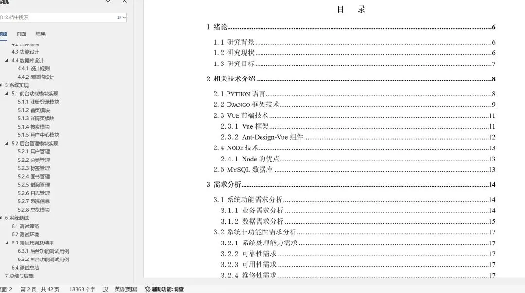 采用Django框架进行后端开发,结合MySQL数据库进行数据存储,并使用Vue.js构建前端界面。系统实现了用户注册、登录、图书搜索、借阅、归还等核心功能,同时提供了后台管理模块,包括用户管理、图书管理、借阅管理等,以满足图书馆管理者和读者的需求。通过分层架构设计,系统保证了高内聚、低耦合的特性,使得维护和扩展变得更加容易。此外,系统还经过了全面的测试,包括功能测试、性能测试、兼容性测试和安全性测试,确保了系统的稳定性和可靠性。