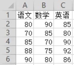 某班级期中考试成绩汇总在文件“score.csv”中,包含了语文、数学、英语三科的分数,数据内容如下图显示: