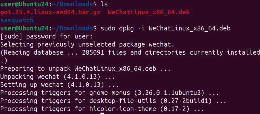 sudo dpkg -i WeChatLinux_x86_64.deb