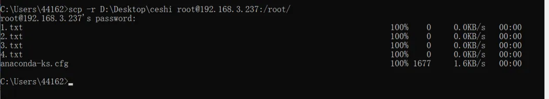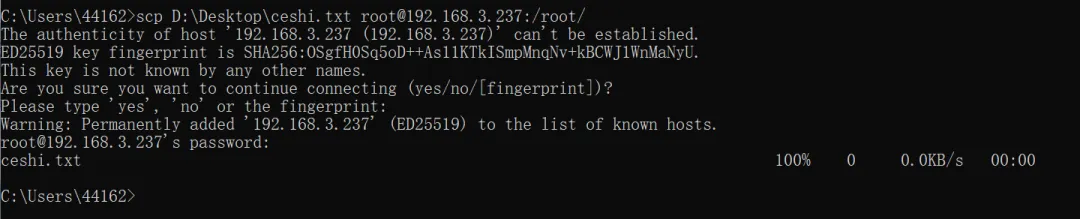 scp D:\Desktop\ceshi.txt root@192.168.3.237:/root/