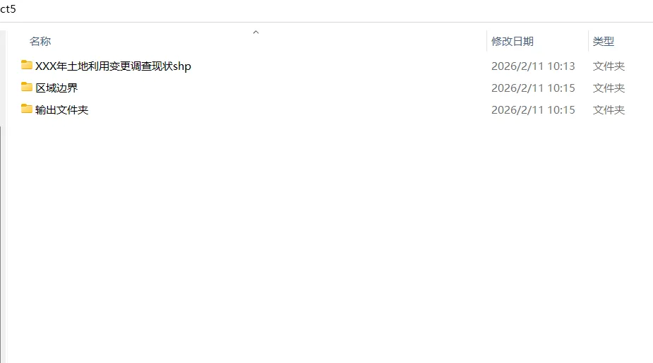 待裁剪数据:LandUse.shp(土地利用变更调查现状核心数据shp);裁剪边界:区域边界文件夹(内含区域边界shp文件);输出路径:output_land_use(空文件夹,用于存放裁剪后的结果);2. 完整可运行代码