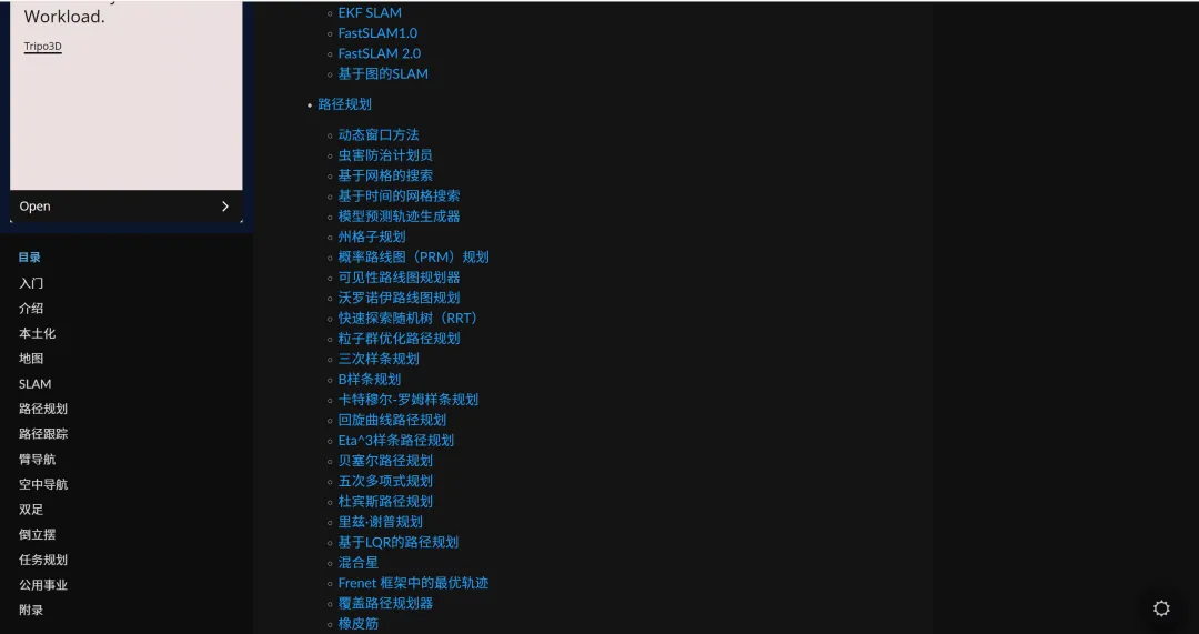 - 教科书级配套资源:项目官网提供完整的在线教科书,涵盖每个算法的数学基础、代码实现细节、参数调优指南及实际应用案例。该教材已被斯坦福大学、东京大学等高校采纳为机器人课程辅助教材。