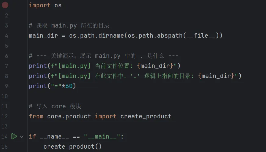 ● 运行姿势: 如果你使用了“.”,就不要直接运行那个文件,而是通过主程序(main.py)来导入它,或者使用 python -m core.product 的方式运行。
