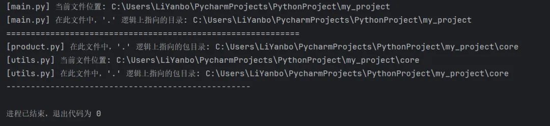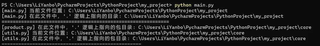 2. product.py 中的 .: 输出的是 D:\my_project\core。说明在 core 包内部,. 变成了 core 目录。