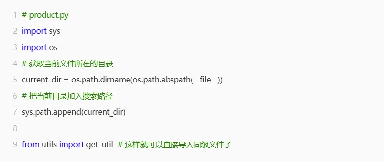 在 product.py 的最开头,手动把当前目录加入 Python 的搜索路径,这样它就变成了“顶层包”: