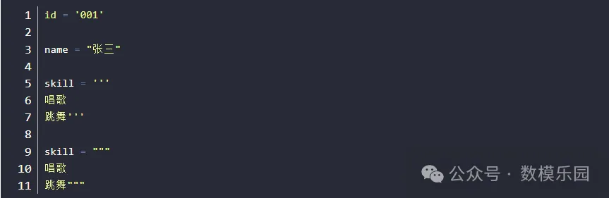 Python 可以使用引号(')、双引号(")、三引号(''' 或 """)来表示字符串,引号的开始与结束须类型相同,三引号可以由多行组成。如下所示: