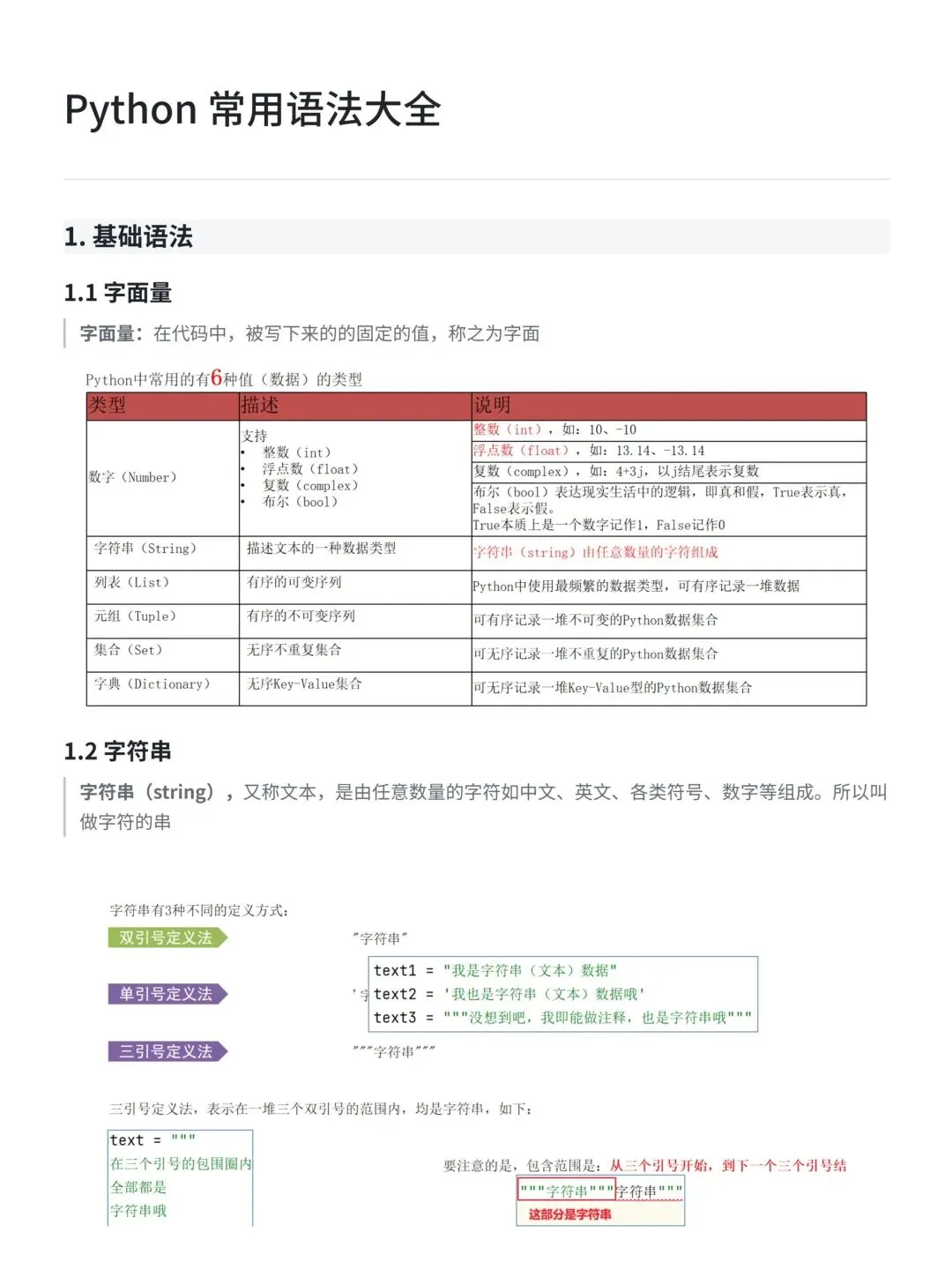 覆盖变量、循环、函数、类等核心知识点,清晰易懂、标注重点,不管是零基础入门,还是刷题、写项目时查漏补缺,都能直接用。