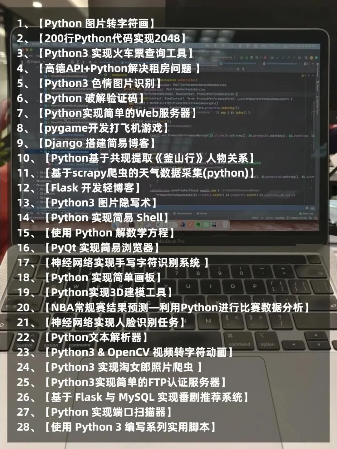 相信不少入门学Python的朋友都愁没合适的项目练手,在我看来,基础学得再扎实,不经过实战演练也是白费功夫。这些项目特别适合新手入门,源码和数据都整理好了!