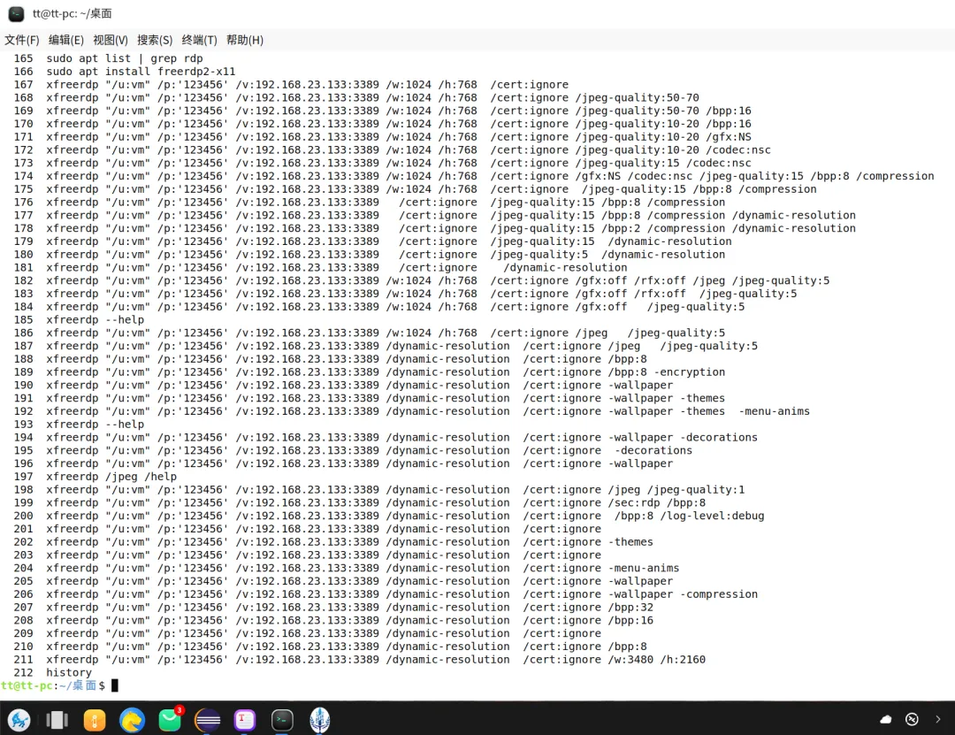 xfreerdp "/u:xxxx" /p:'xxxx' /v:192.168.23.133:3389 /dynamic-resolution /cert:ignore