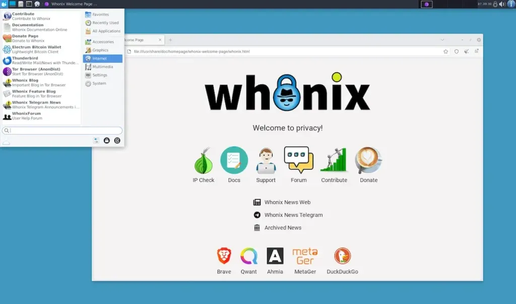 Septor是基于Debian+KDE的Tor系统,类似Tails但可硬盘安装。2026年仍活跃,适合喜欢美观桌面的隐私用户。