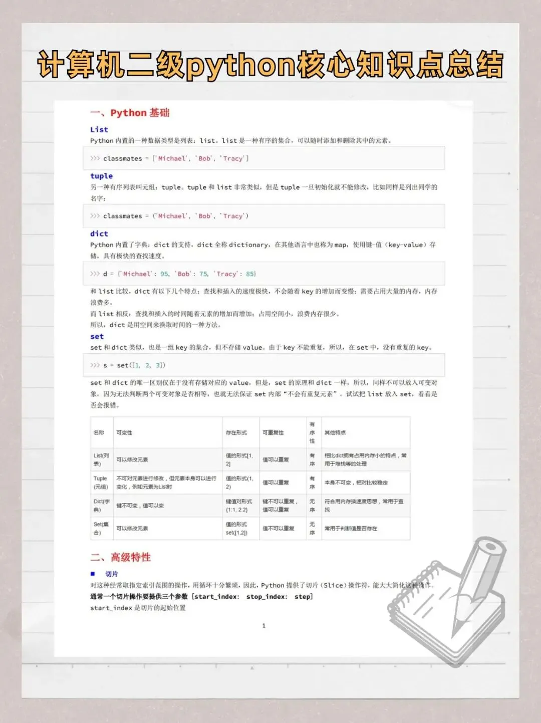 >计算机专业Python核心知识点总结【完整版】