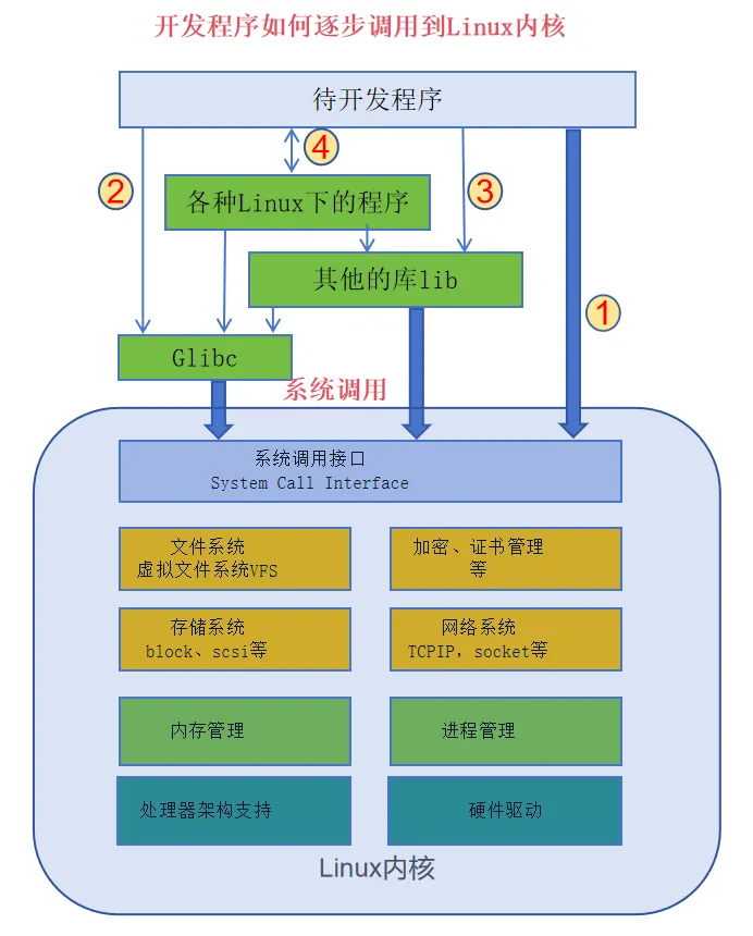 但是我们实际编程的时候,很少会直接使用系统调用接口,那是因为glibc库已经基于系统调用接口封装好了更容易调用的glibc提供的库函数api。