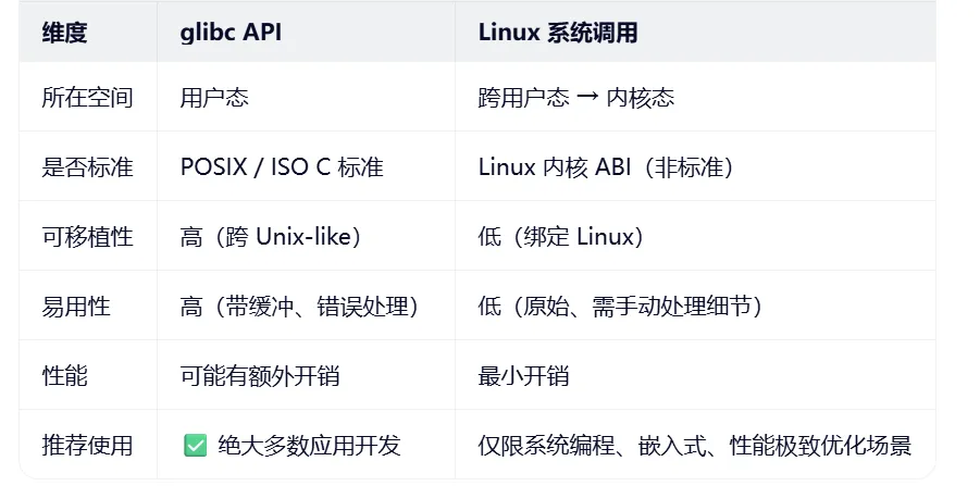 通常的C语言编程,推荐使用glibc,而不是Linux系统调用,可以看一下千问总结的二者的区别
