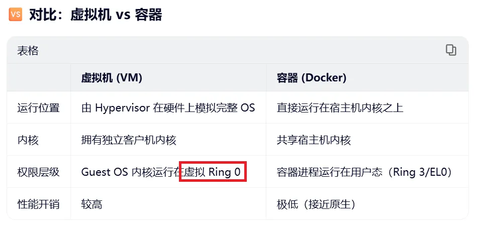 现在AI Agent使用较多的docker容器,功能比较强大,但其实也是在用户态的。但容器的隔离与资源限制完全由内核提供,因此“容器在用户态”是指进程执行级别,而非容器实现不依赖内核
