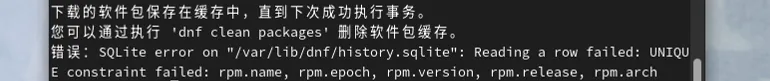 还好软件源可以用,只是大部分软件包需要升级,数量很多,估计时间比较长。下载这些软件的过程没有什么问题,速度时快时慢,但也算可以接受。只是在执行安装事务的时候,提示了一次错误,dnf本地记录已安装软件的sqlite3数据库,出现主键约束重复的情况。原因不明,直接重复执行了一次更新命令,升级操作居然正常的进行了下去。是什么情况导致的这个提示,就不做深究了。dnf这个软件包管理工具,虽然命令参数和显示结果和yum是一样的,但是关键代码已经被重写,执行效率确实更快了一些。由于虚拟电脑的配置有限,安装近千个软件包,也比较耗时,没有坐等就让它慢慢更新。但问题出现了,鼠标一动桌面会花屏。重启了一下,试试还是不行。我猜测可能是驱动或者跟显示相关的驱动有关系。又尝试重启了一下系统,还是不行,输入密码进桌面就花屏。这可怎么办,好在当时,为了方便使用。给这个虚拟电脑,默认开启了ssh服务,为得是在无桌面启动的模式下通过ssh执行一些工作任务。于是用ssh登录试了一下,成功。虽然可以通过远程的方式,执行命令下载安装40版本了,但还是想排除这个花屏问题。大概想了一下,首先想到的是vbox的视频内核模块,会不会因为更新内核后不匹配导致问题。系统的软件包已经更新到了39版本下的最新状态。接下来就是执行升级安装。sudo dnf system-upgrade download --releasever=40